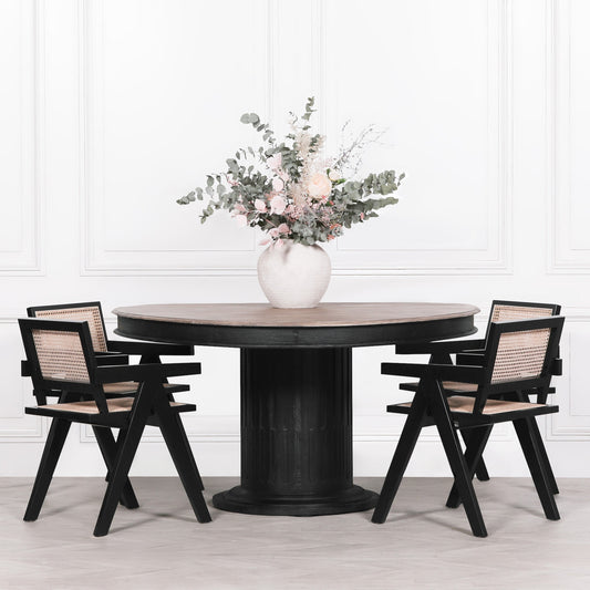 [Set of 2] Maison Reproductions Black Painted Wooden Cane Dining Chairs - WDC521