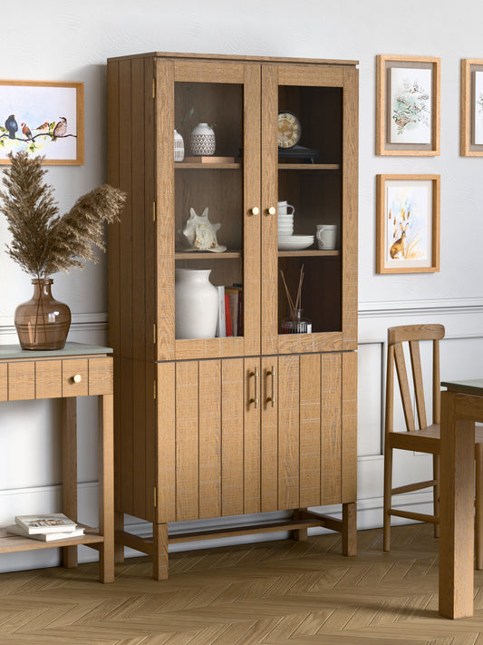 Tall Wide 2 Door Glazed Display Cabinet in Grandson Oak - 4321556