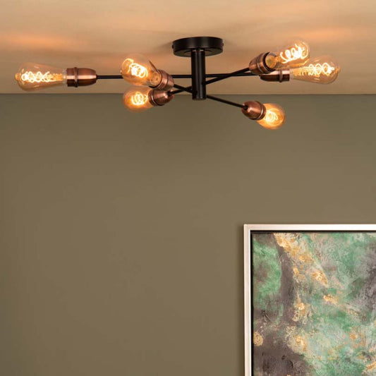 Clark Matt Black and Copper 5 Light Semi Flush Ceiling Light