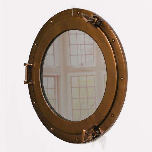 Handcrafted Large Antiqued Brass Style Port Hole Mirror - FM65