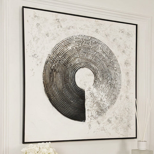 Astratto Silver Textured Circle Canvas Wall Art with Black FrameVendor:Rowen HomesRegular price £99.00Regular priceUnit price per-