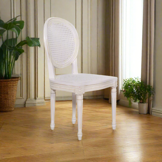 [Set of 2] Maison Reproductions Off White Chateau Rattan Dining Chairs - MWF03