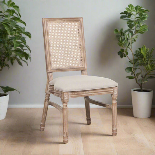[Set of 2] Maison Reproductions Wooden Louis Upholstered Square Rattan Back Dining Chairs - WDC137